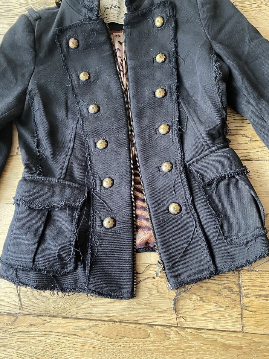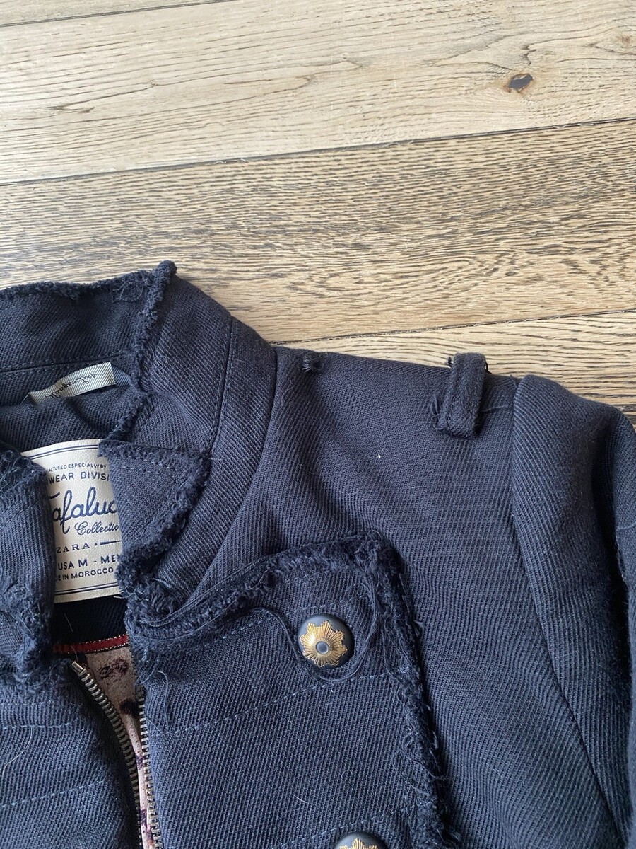Zara Trafaluc Women Jacket M Military Moto Raw Edge Zip Up Button Accent Black B70