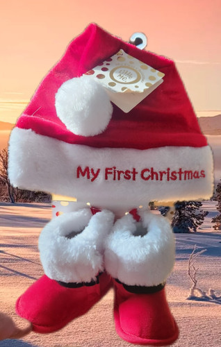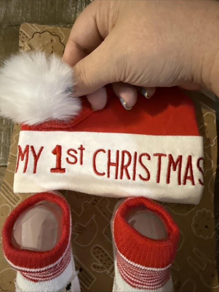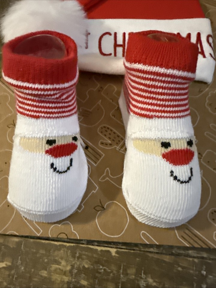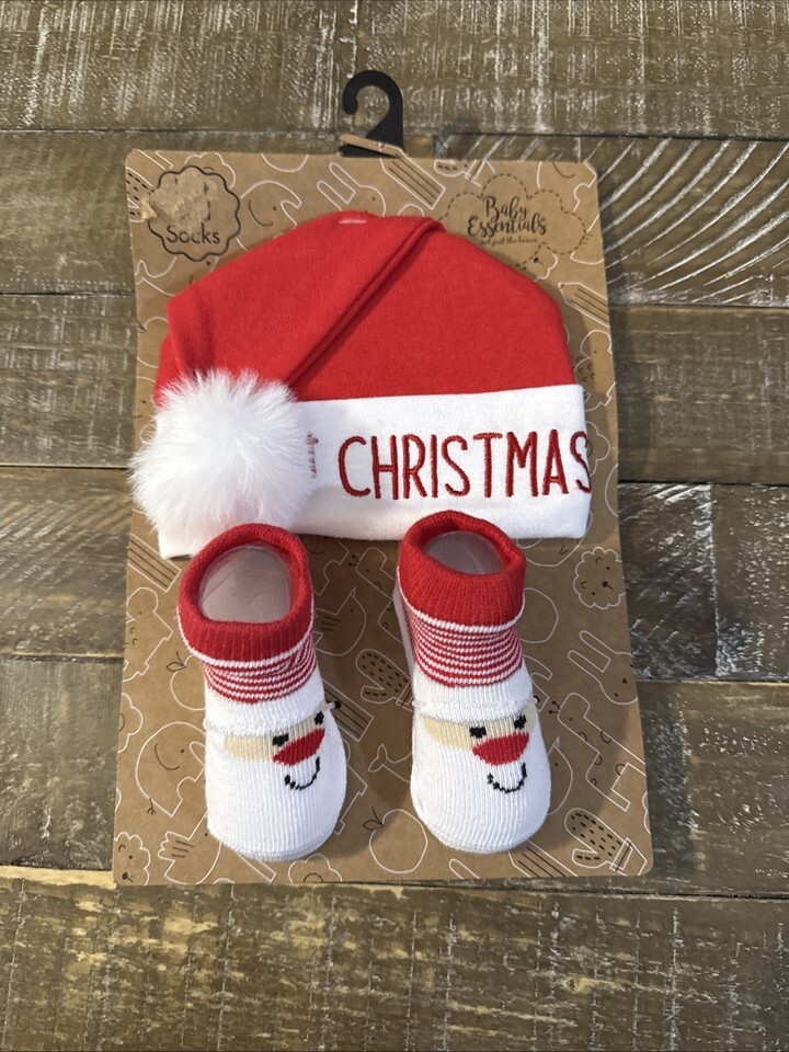 Baby Essentials Christmas Infants 2 Piece Set Hat And Booties