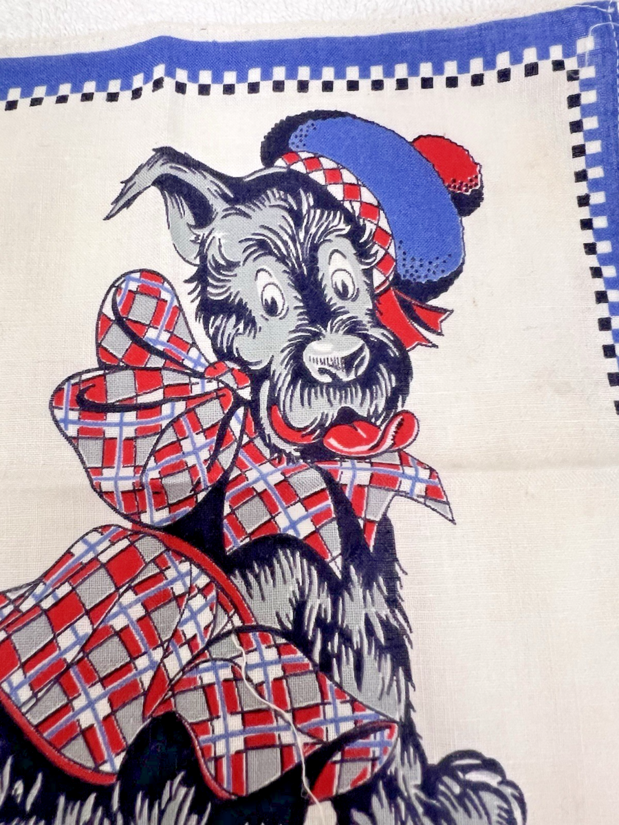 Vintage 1950?s Tom Lamb Scottie Terrier Black Dog Hat w/Birds Square Handkerchief measures approx. 8". Great condition, vibrant bright colors, no signs of use.