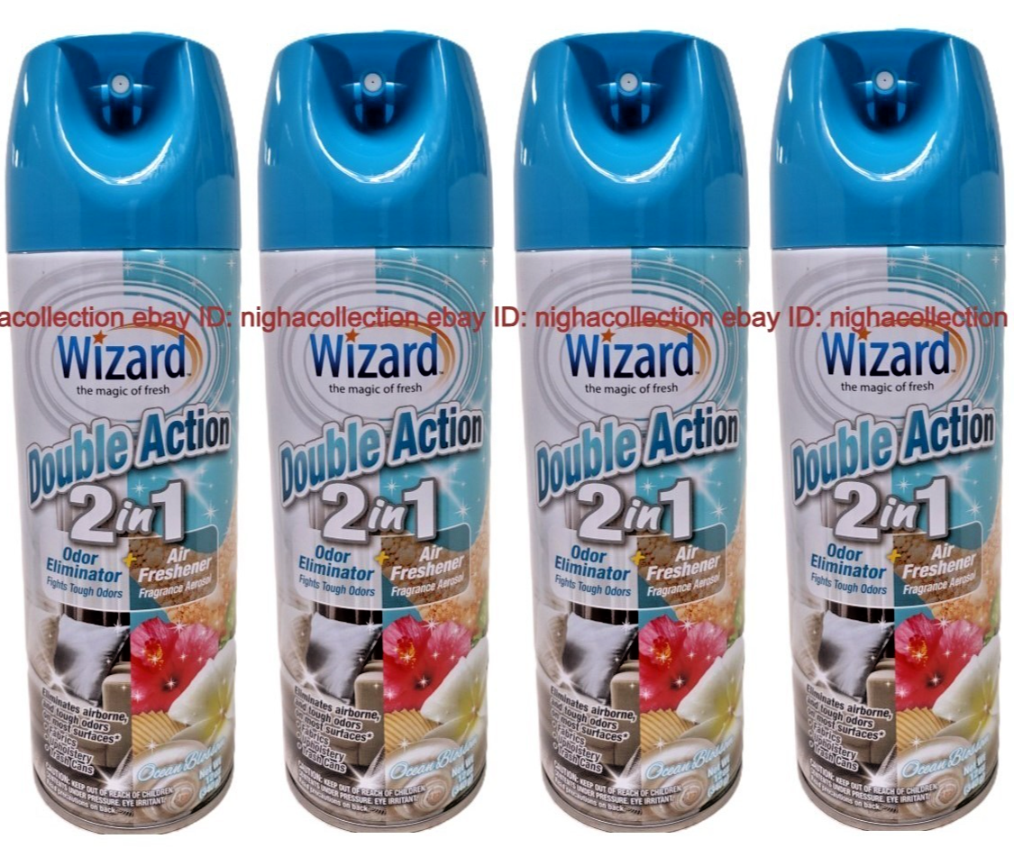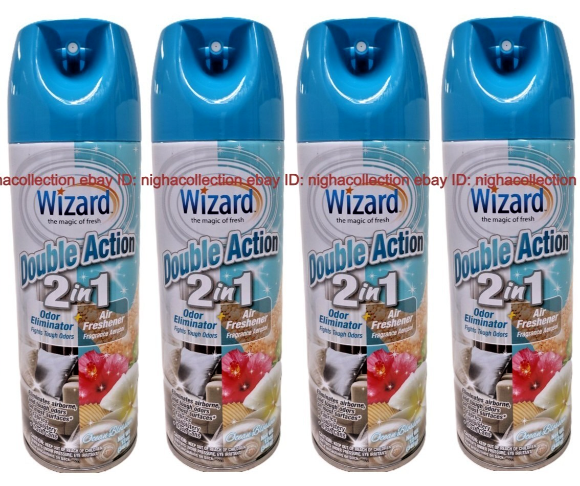 ( LOT 4 ) Wizard Air Freshener Spray 2-in-1 Double Action OCEAN BLOSSOM Odor Neutralizer