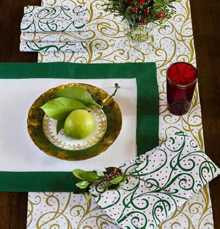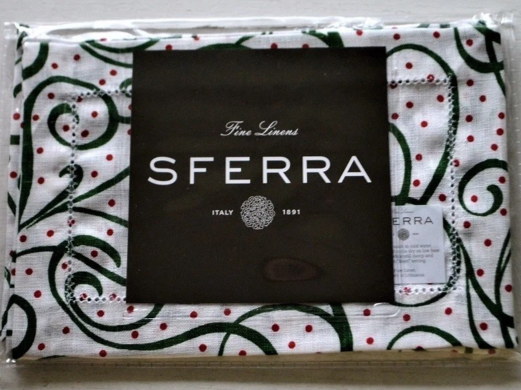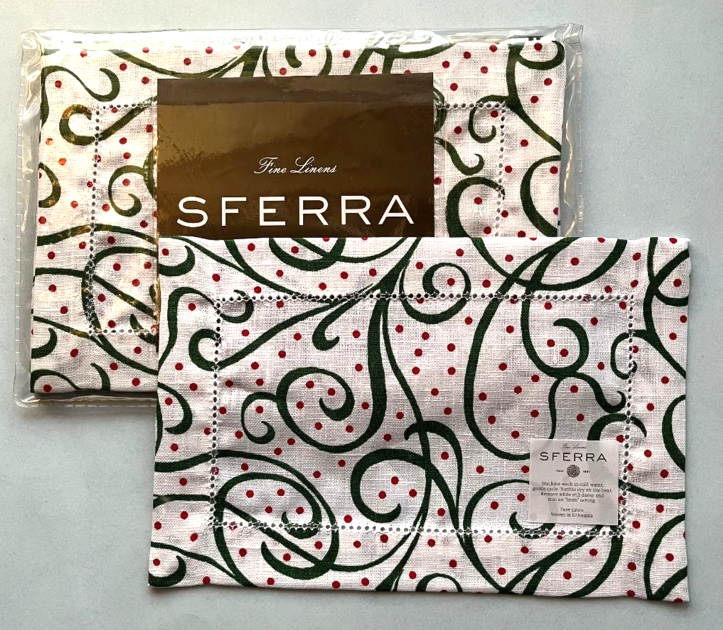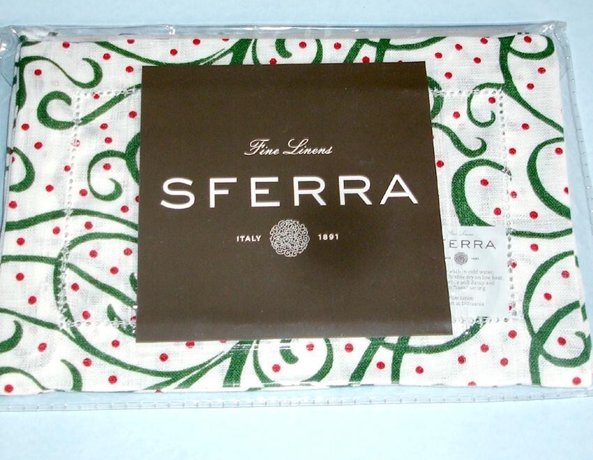 Sferra Frolic Holiday Linen Cocktail Napkins Emerald Green/Red 6x9" SET/4 New