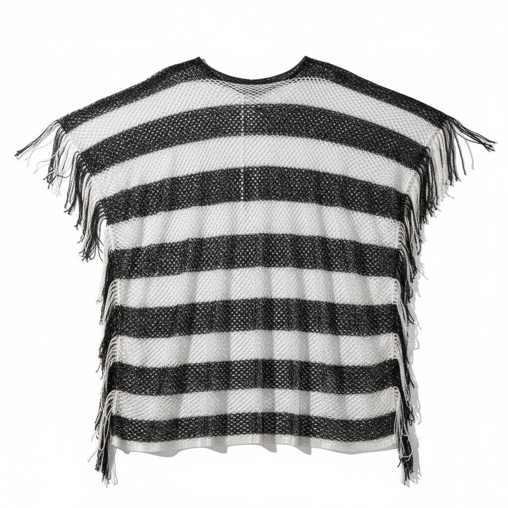 Add some sparkle to your beach or poolside look with this stunning metallic fishnet poncho! Perfect as a swimsuit coverup or a trendy layering piece. This poncho is in excellent condition and ready to make a statement. Size 2X. Measurements: Length: 34", Pit to Pit: 28" (stretches to 36"), Armhole opening: 19". Don't miss out ? grab it now and shine!