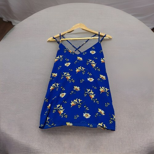 Naked Zebra Blue Floral Blouse Women’s Small Trendy Spring Summer Tank Top