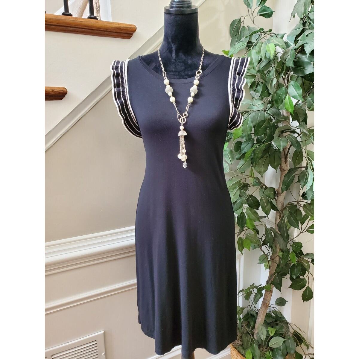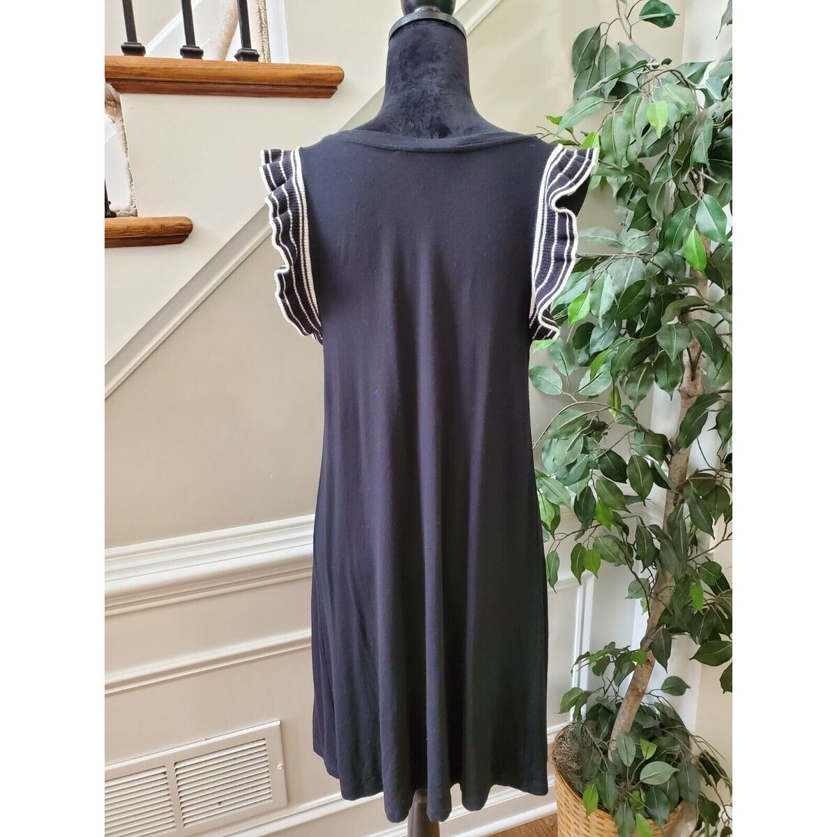 Loft Women Solid Black Rayon Round Neck Sleeveless Knee Length Dress Size Medium