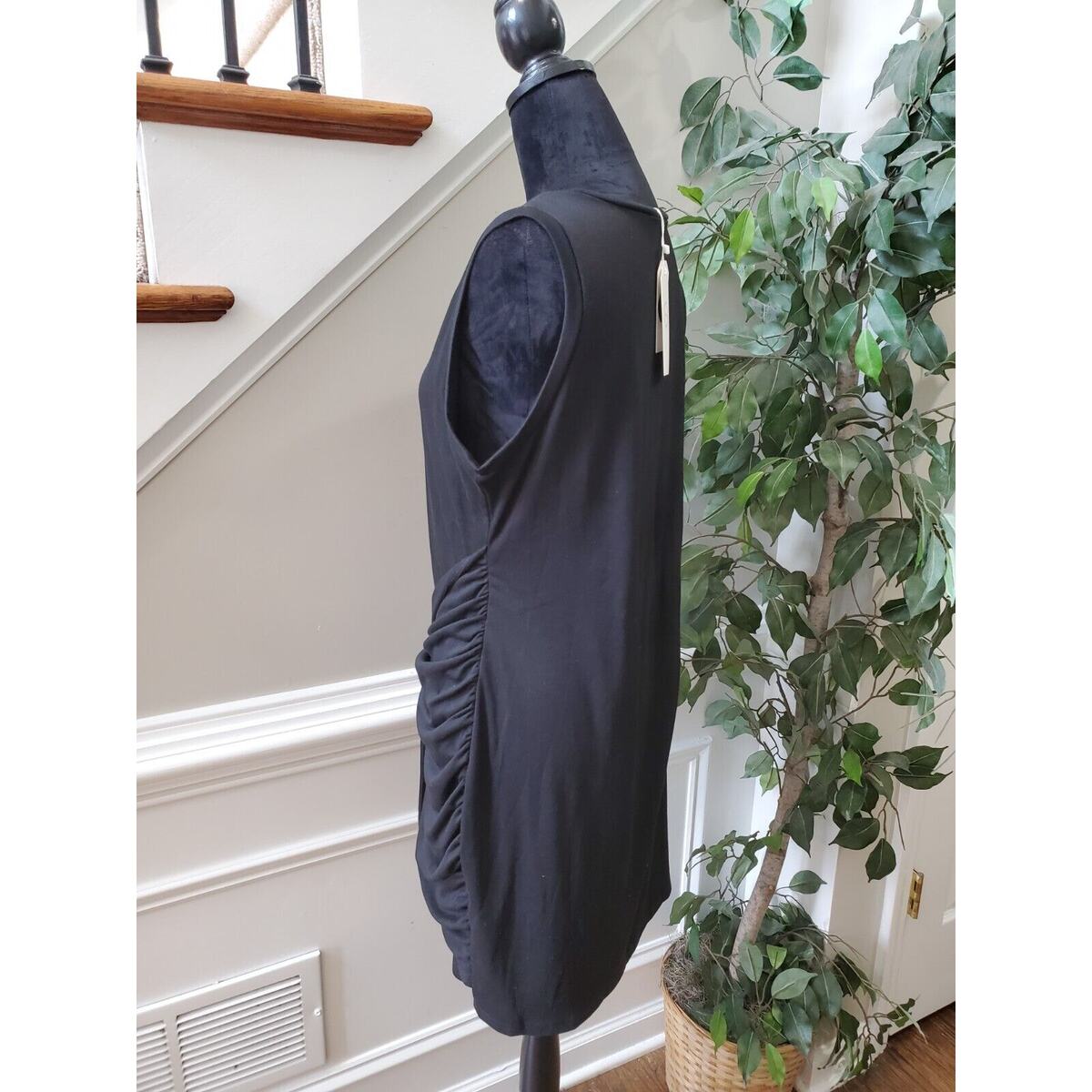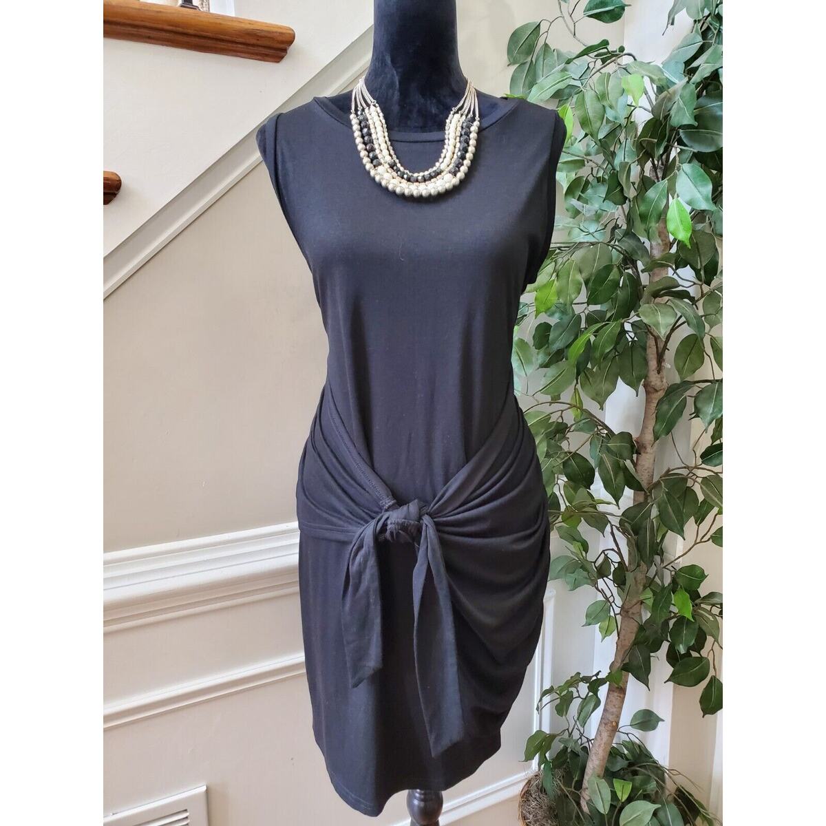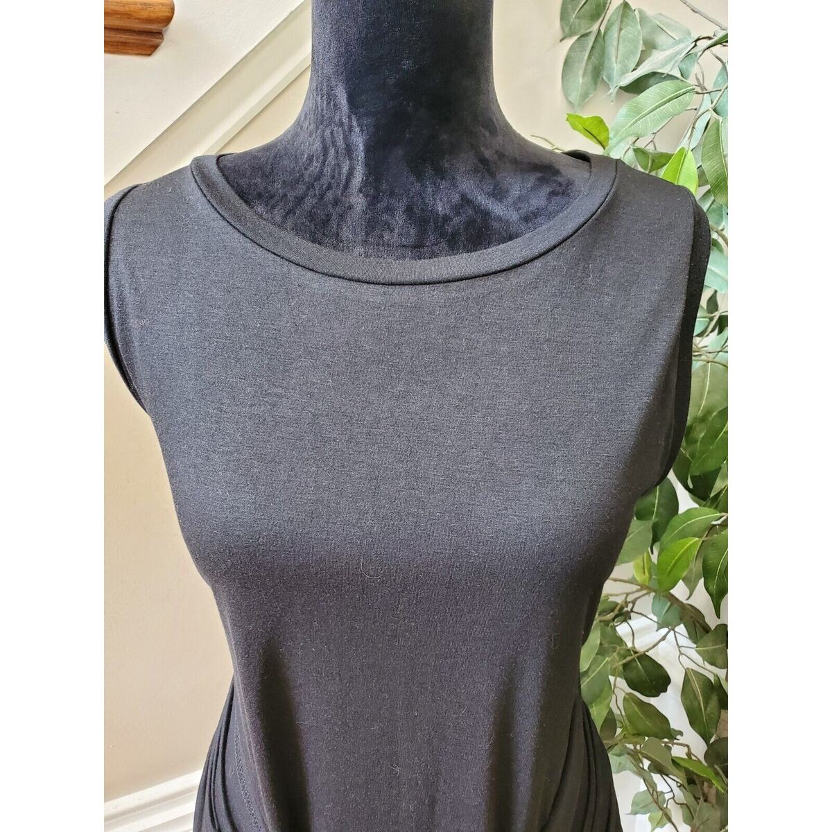 Lillusory Women Black Polyester Round Neck Sleeveless Knee Length Dress Size XL
