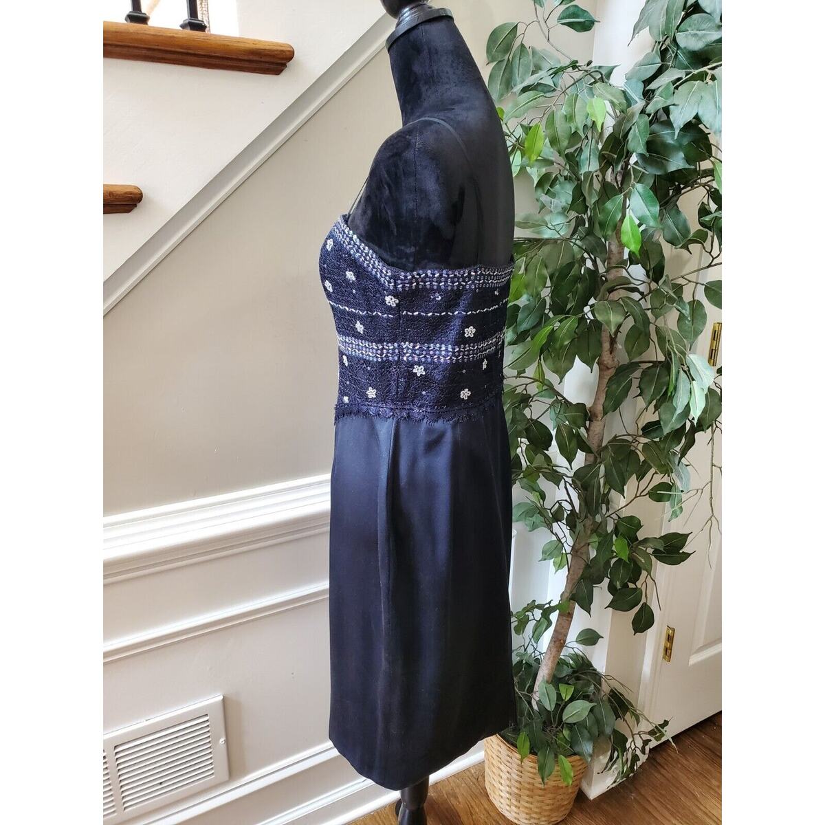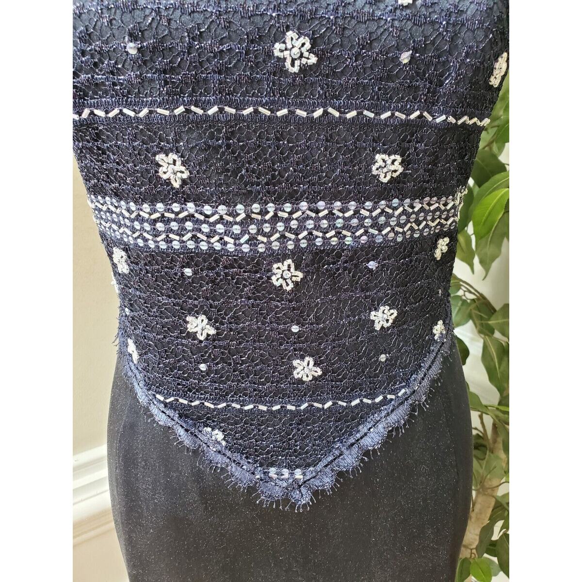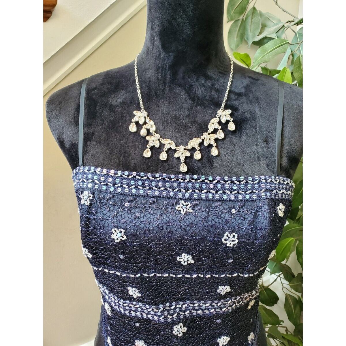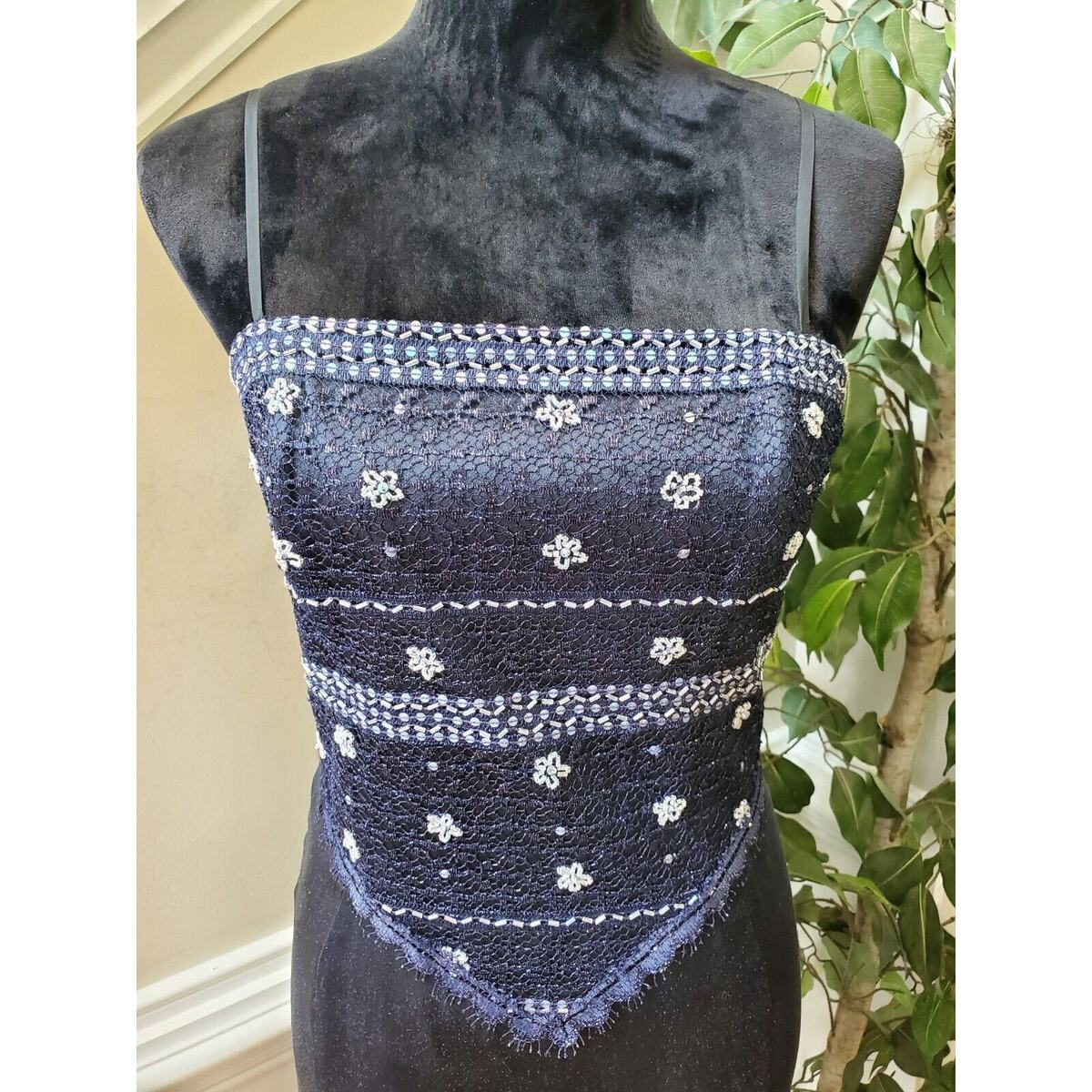 Vintage Women's Blue Polyester Sleeveless Dressy Strappy Knee Length Dress S