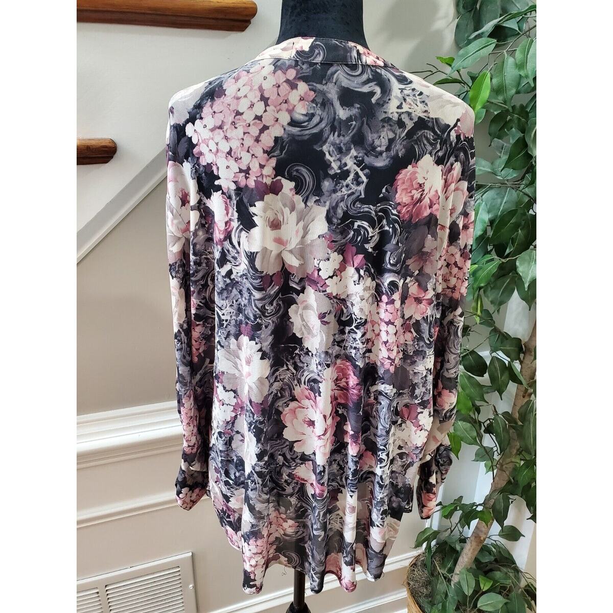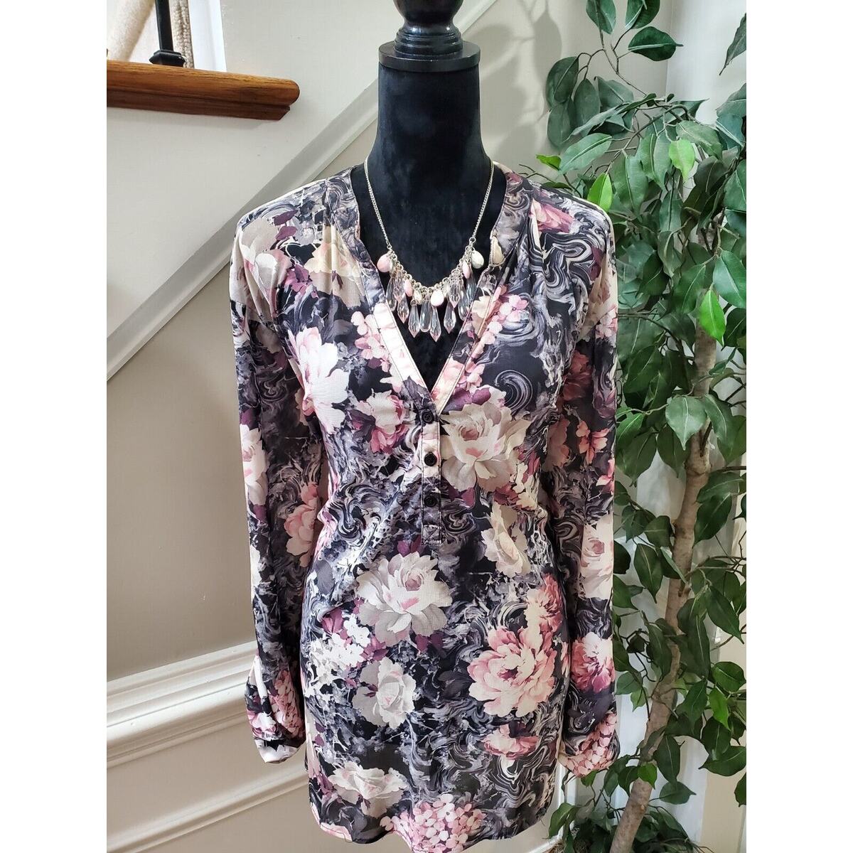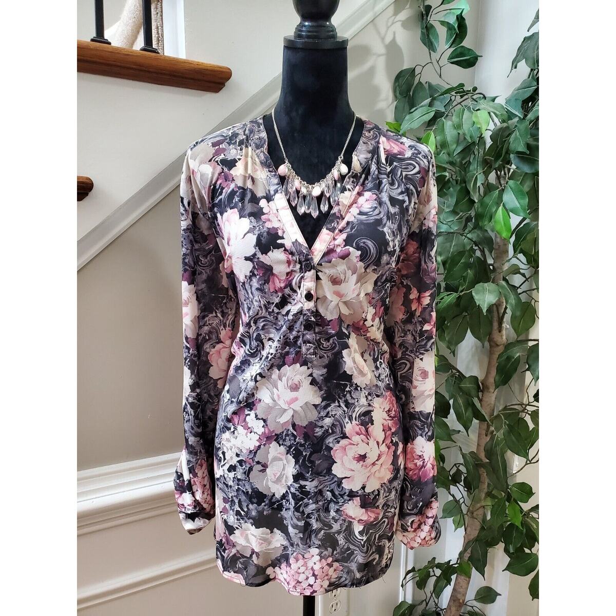 G Collection Women Floral Polyester V-Neck Long Sleeve Casual Top Blouse Size 2X