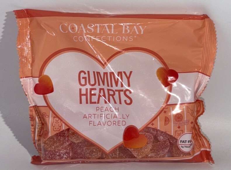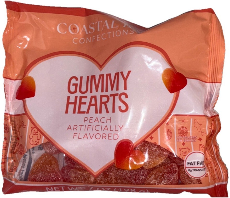 Valentines Day/Anytime Gummy Hearts Peach Flavored By Coastal Bay 1ea 7oz Bag-BRAND NEW-SHIPS N 24 HOURS.