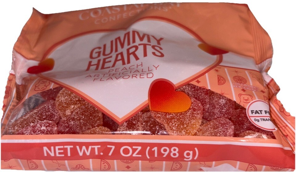 You Will Receive 1 ea 7oz Bag Valentines Day/Anytime Gummy Hearts Peach Flavored By Coastal Bay-BRAND NEW-SHIPS N 24 HOURS.