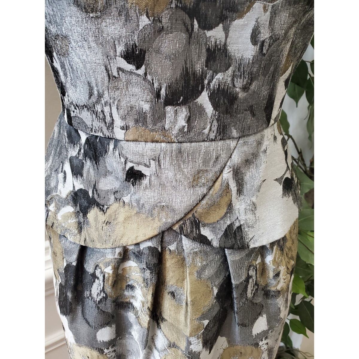 Adrianna Papell Silver Gray Abstract Print Peplum Sheath Dress Size 4