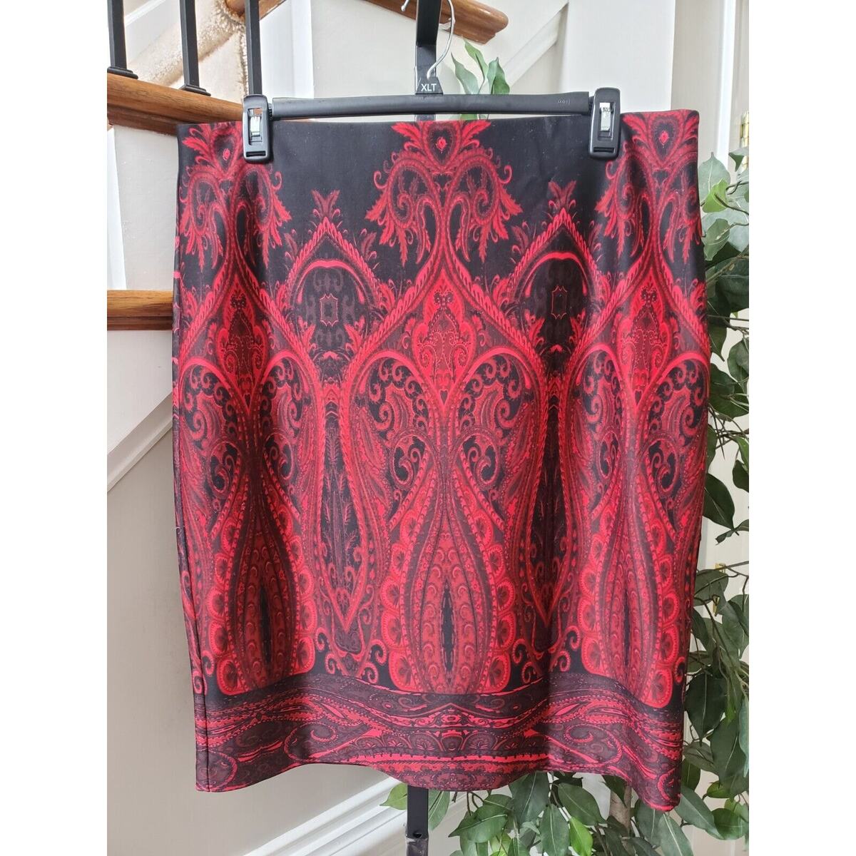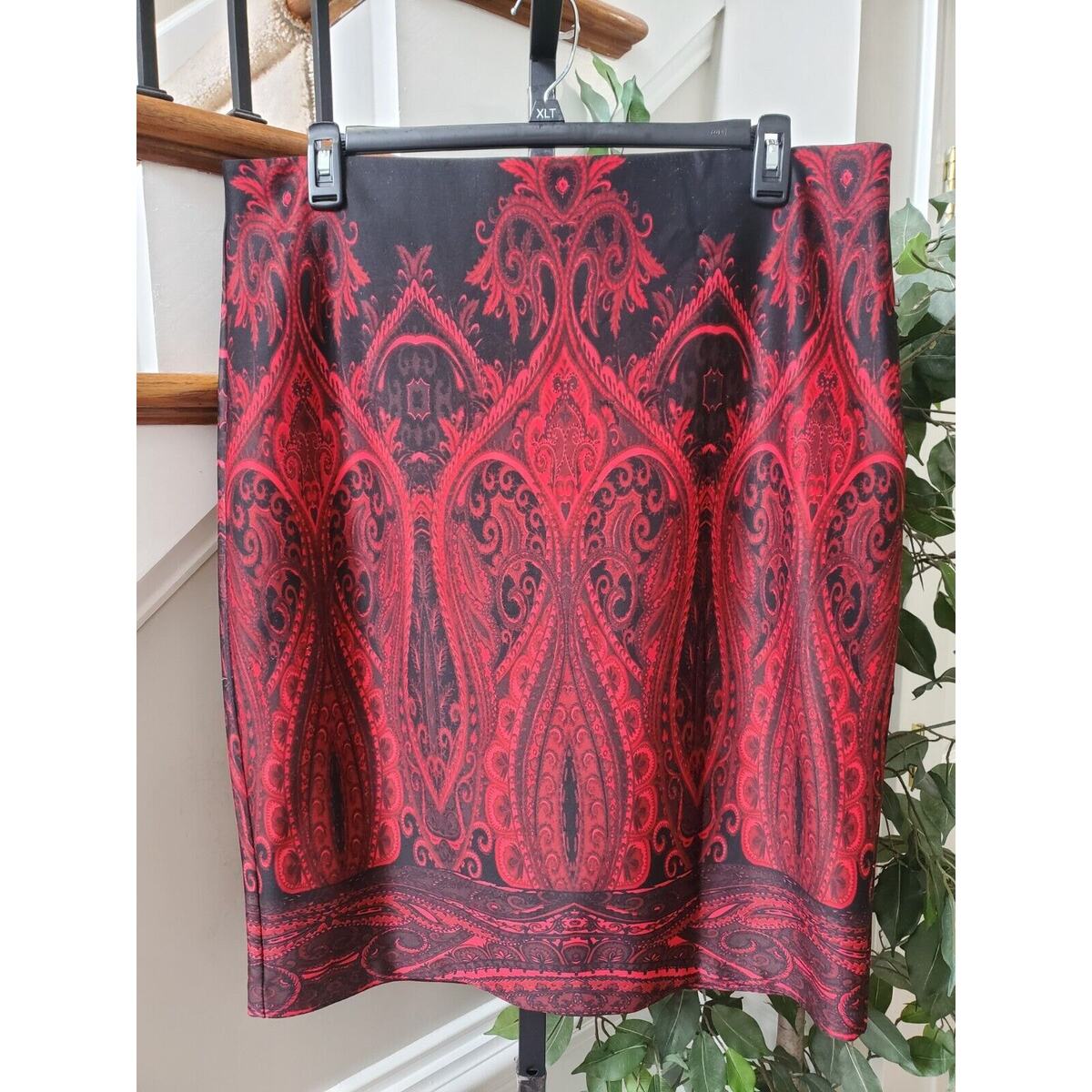 NYCC Women's Red & Black Polyester Pencil & Straight Casual Knee Length Skirt XL