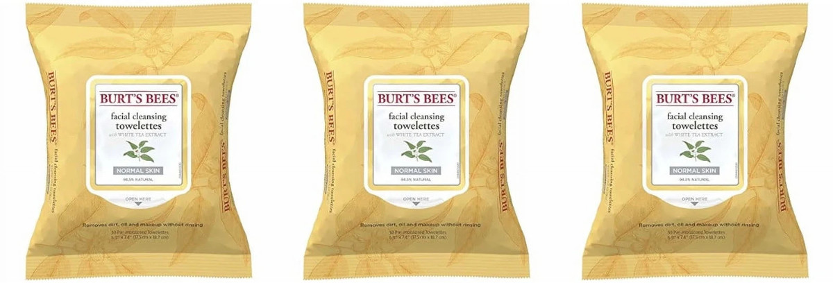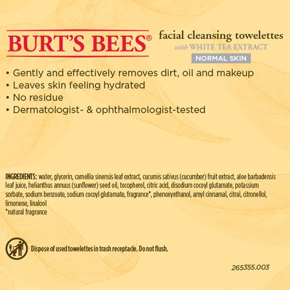 3 Pack Burt's Bees Facial Cleansing Towelettes Wipes White Tea Extract 30Ct/Pk
