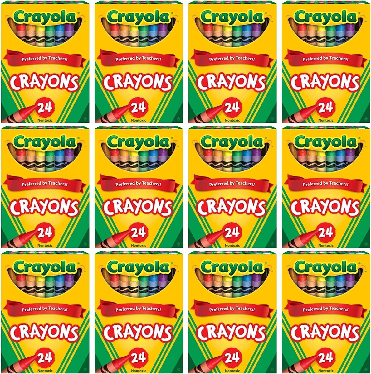 Pack of 12 Crayola 24 Count Non-Toxic Bulk Classic Crayons Kids School Supplies