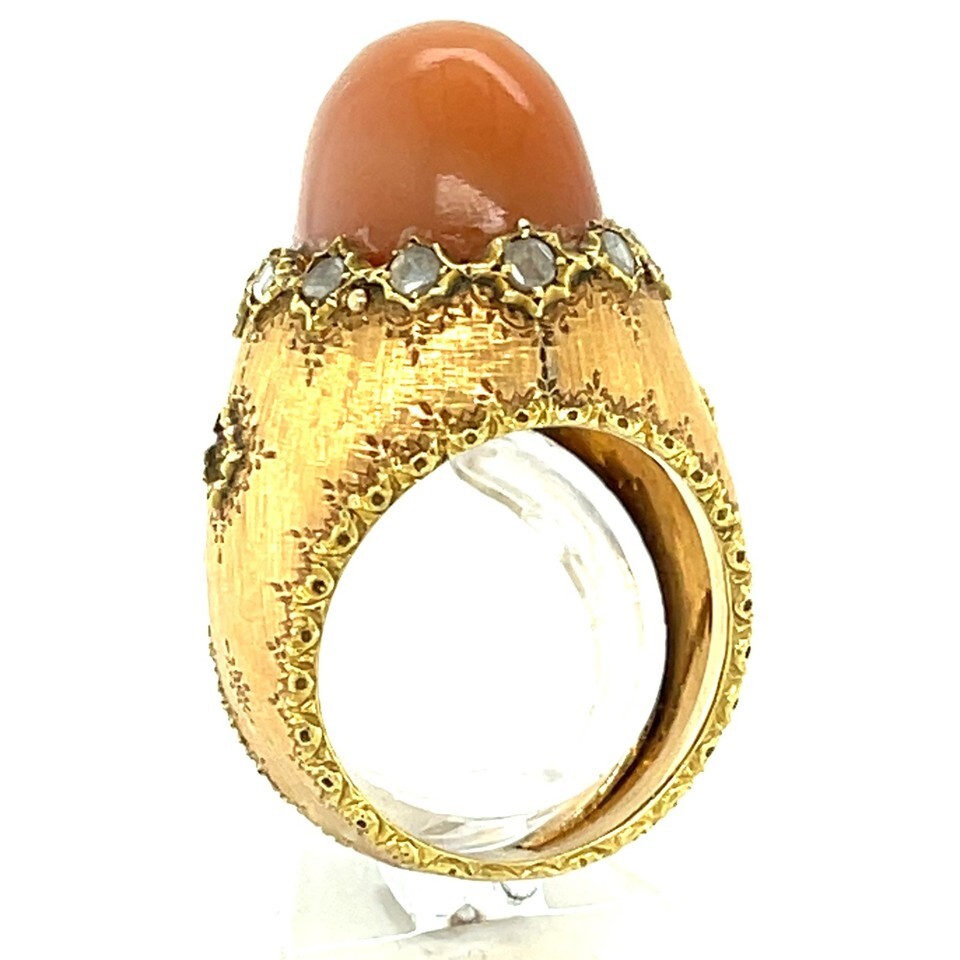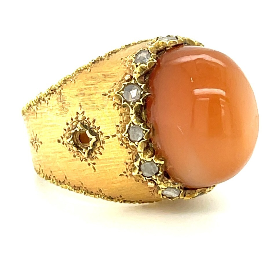 Buccellati 18k Yellow Gold Cat's Eye Moonstone Diamond Dome Ring Sz 7.5 c.1960