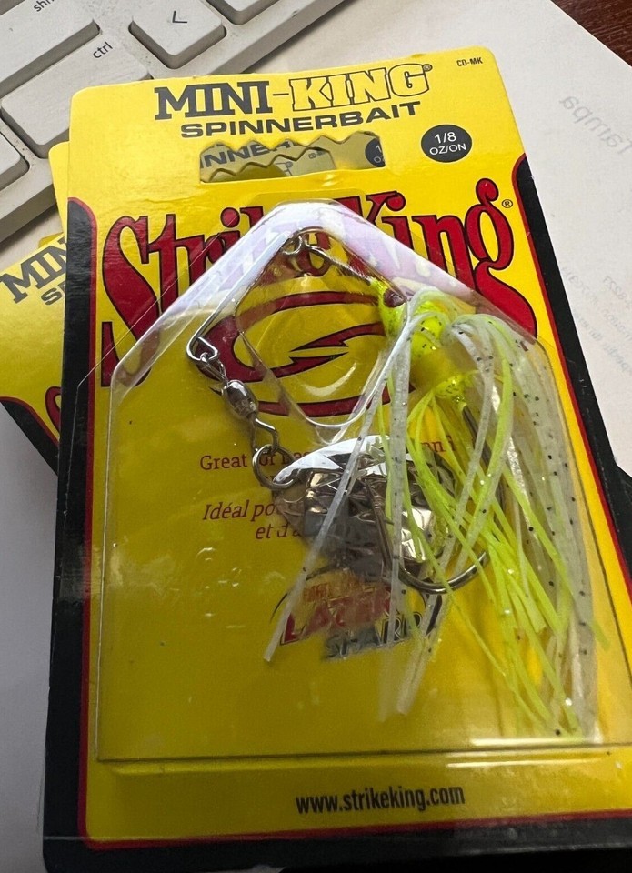 Get ready to catch some serious fish with this Strike King Mini-King Spinnerbait in Chartreuse color. Perfect for freshwater fishing, this spinnerbait is great for catching Barramundi, Bass, Whiting, Smallmouth, Australian Bass, Pike, Kentucky Spotted Bass and more. The bait type is Spinnerbait and the brand is Strike King.