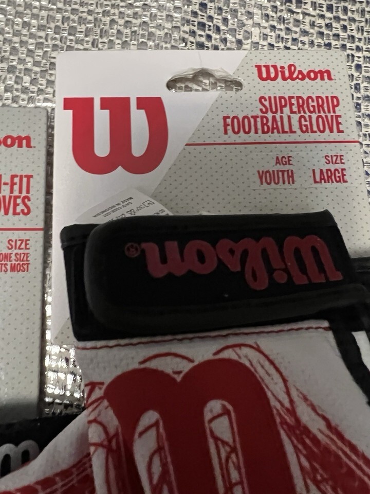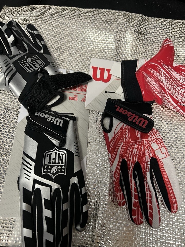 Wilson Football Receiver Gloves Kids Boys Youth Large Red White Adjustable Wrist