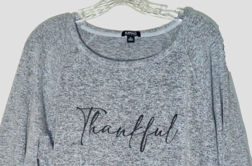 Buffalo David Bitton Womens XL Long Sleeve Pullover Gray Sweatshirt "Thankful"