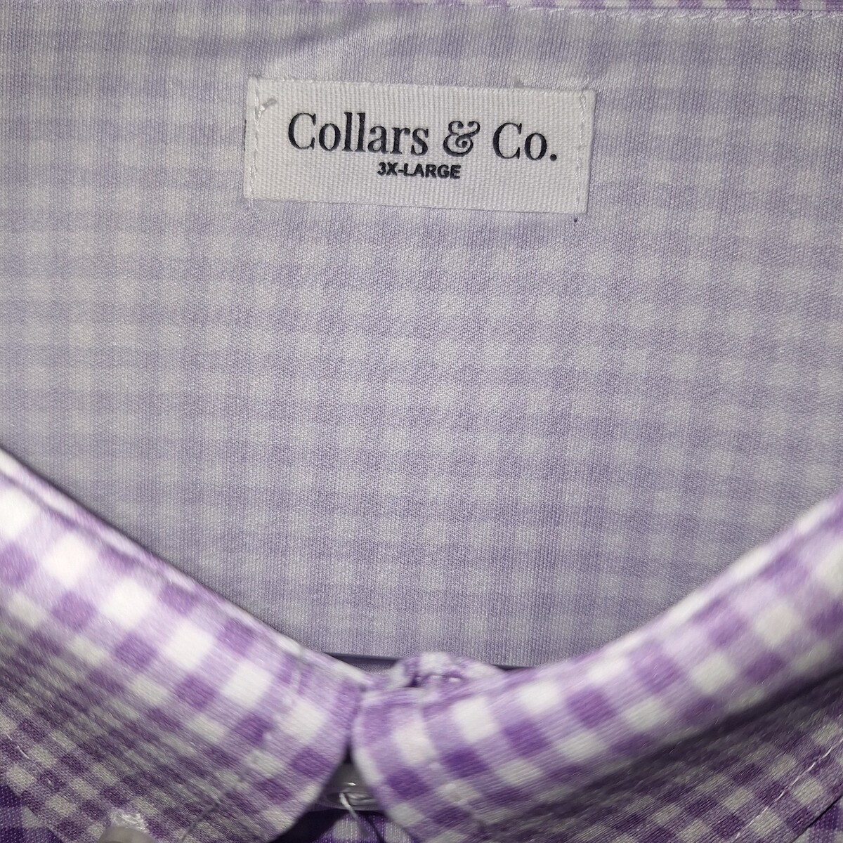 Collars & Co Mens Dress Collar Polo Sz 3XL Purple White Gingham Golf NWOT