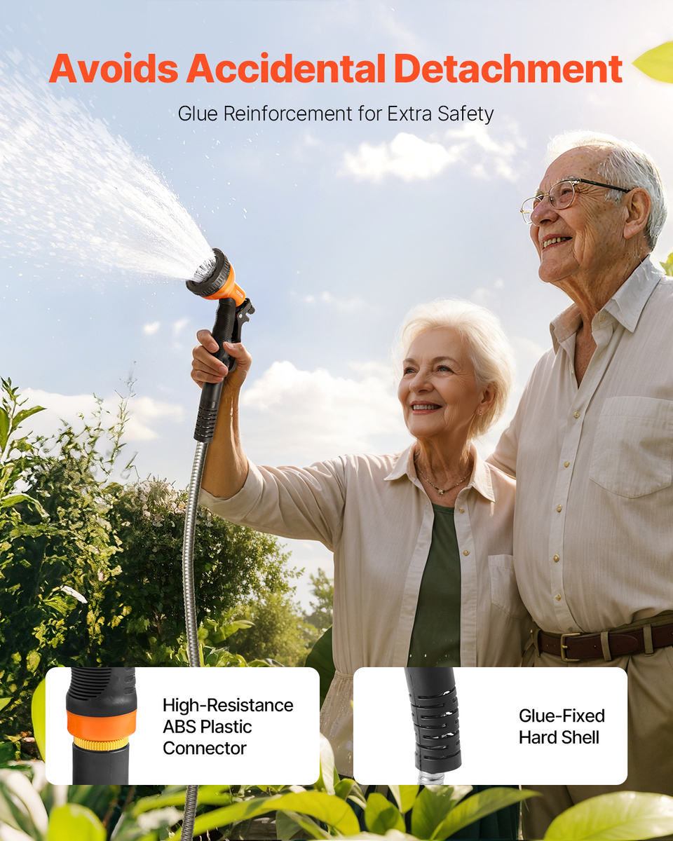 Non Kink Performance: The unique metal design prevents kinks and tangles during use, ensuring a smooth experience. Say goodbye to common frustrations and simplify your watering and cleaning routines.