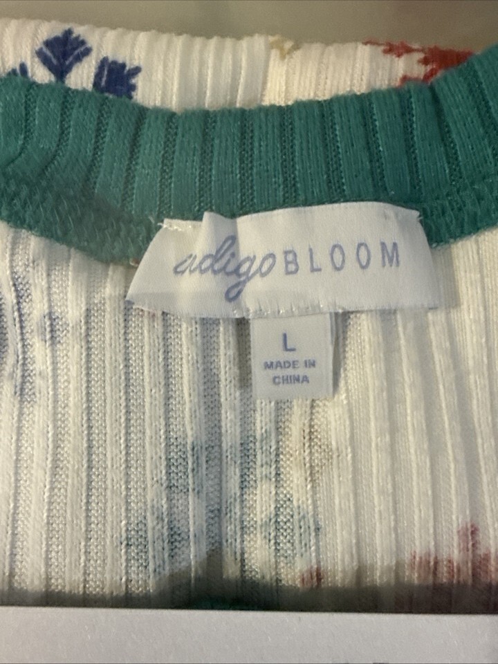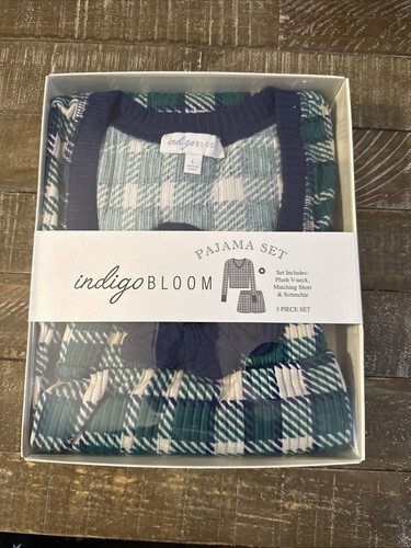 The Meijer Indigo Bloom 3 Piece Christmas Pajama Set in size L is a festive and cozy sleepwear set perfect for the holiday season. This pajama set includes a long-sleeve top, bottoms, and a matching pair of socks, all featuring a colorful Christmas theme. The Indigo Bloom brand ensures quality and comfort, making this set a perfect option for women who want to stay warm and stylish during the holiday season.