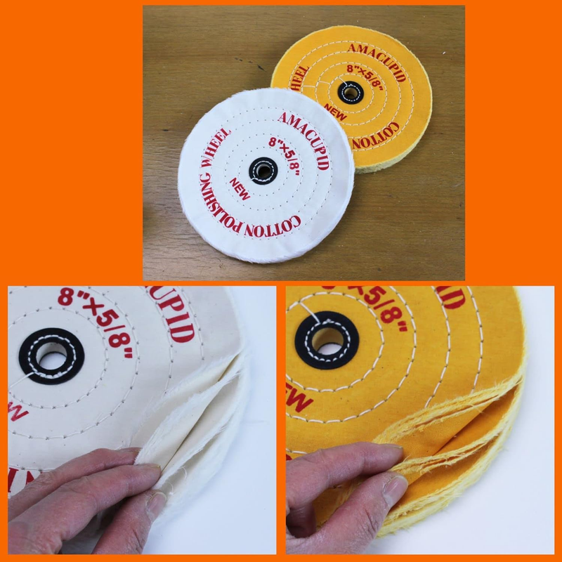 Cotton Buffing Wheel Kit 8 Inch. for Bench Grinding Wheel Polishing Machines. Polishes Jewelry, Glass, Tools and More. 5/8 Inch Arbor