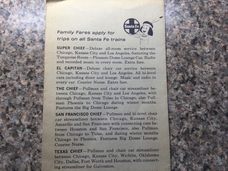 Santa Fe Railroad FAMILY Fares Brochure and similar items