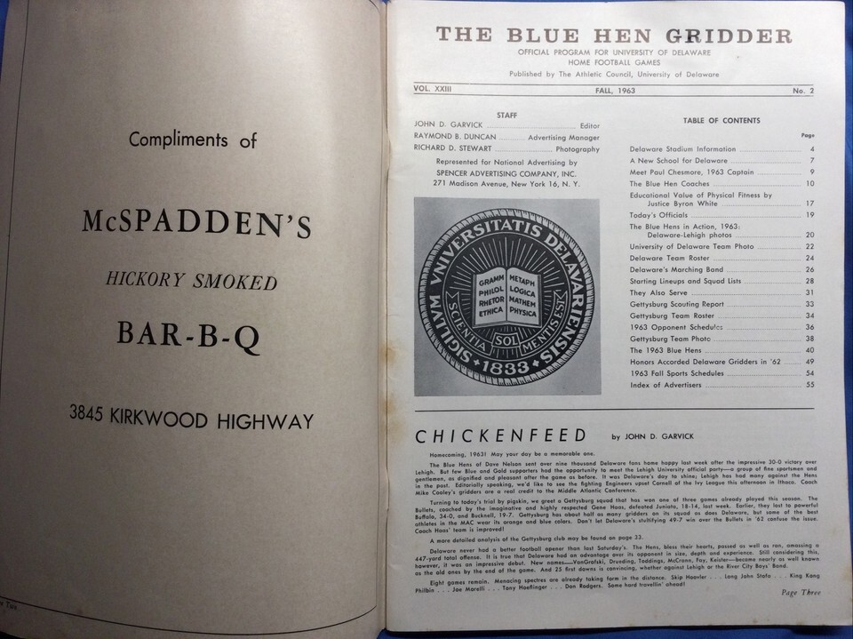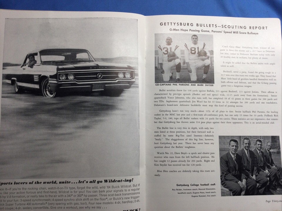1963 DELAWARE VS GETTYSBURG COLLEGE FOOTBALL GAME PROGRAM - HOMECOMING. Good original condition. Free Shipping