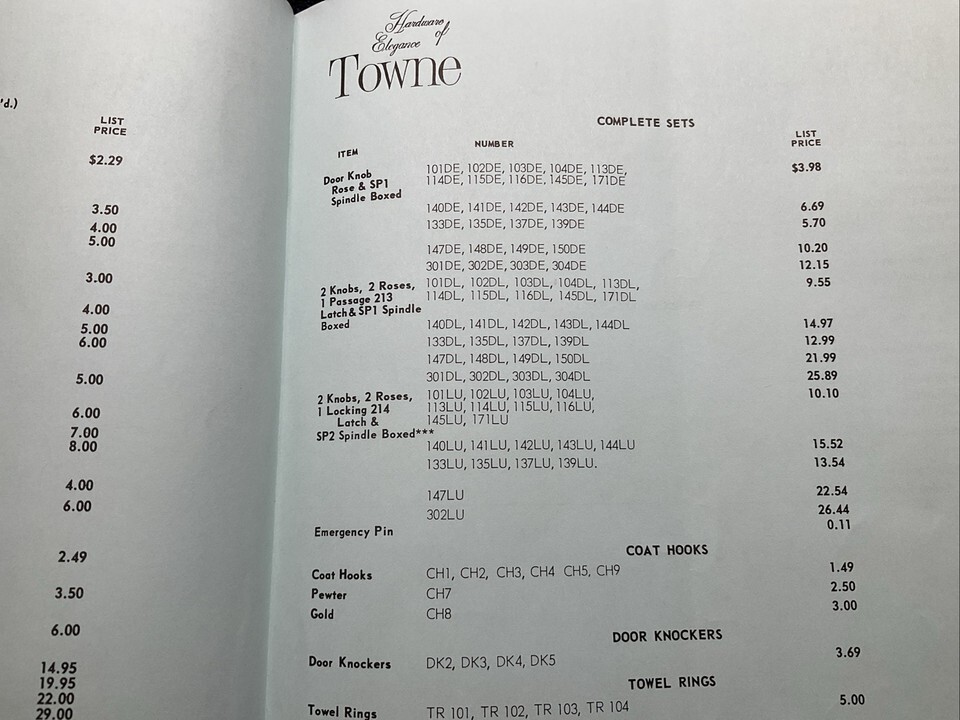 Towne Ceramic Hardware 1962 CATALOG With PRICE LIST