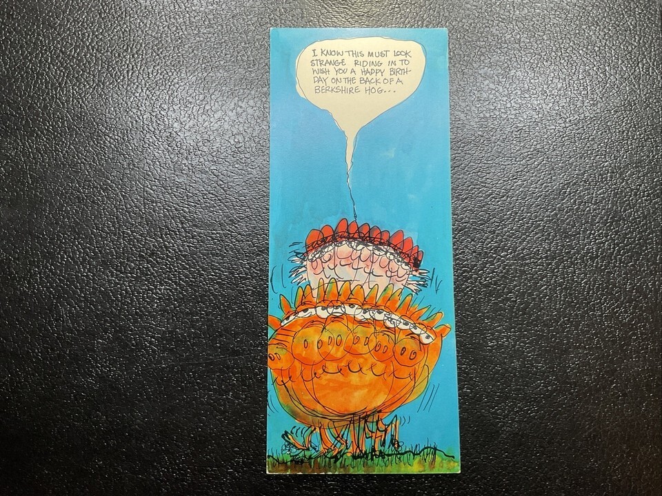Vintage 1965 American Greetings UNUSED Birthday Card BERKSHIRE HOG PIG -HI BROWS