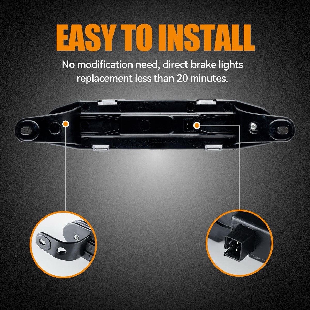 Features a dual-row LED design for improved brightness and visibility over the stock halogen unit. Black ABS housing with a sealed lens and gasket provides strong resistance to water, dust, and road debris. Ideal replacement for faded, cracked, or non-functional factory brake lights.