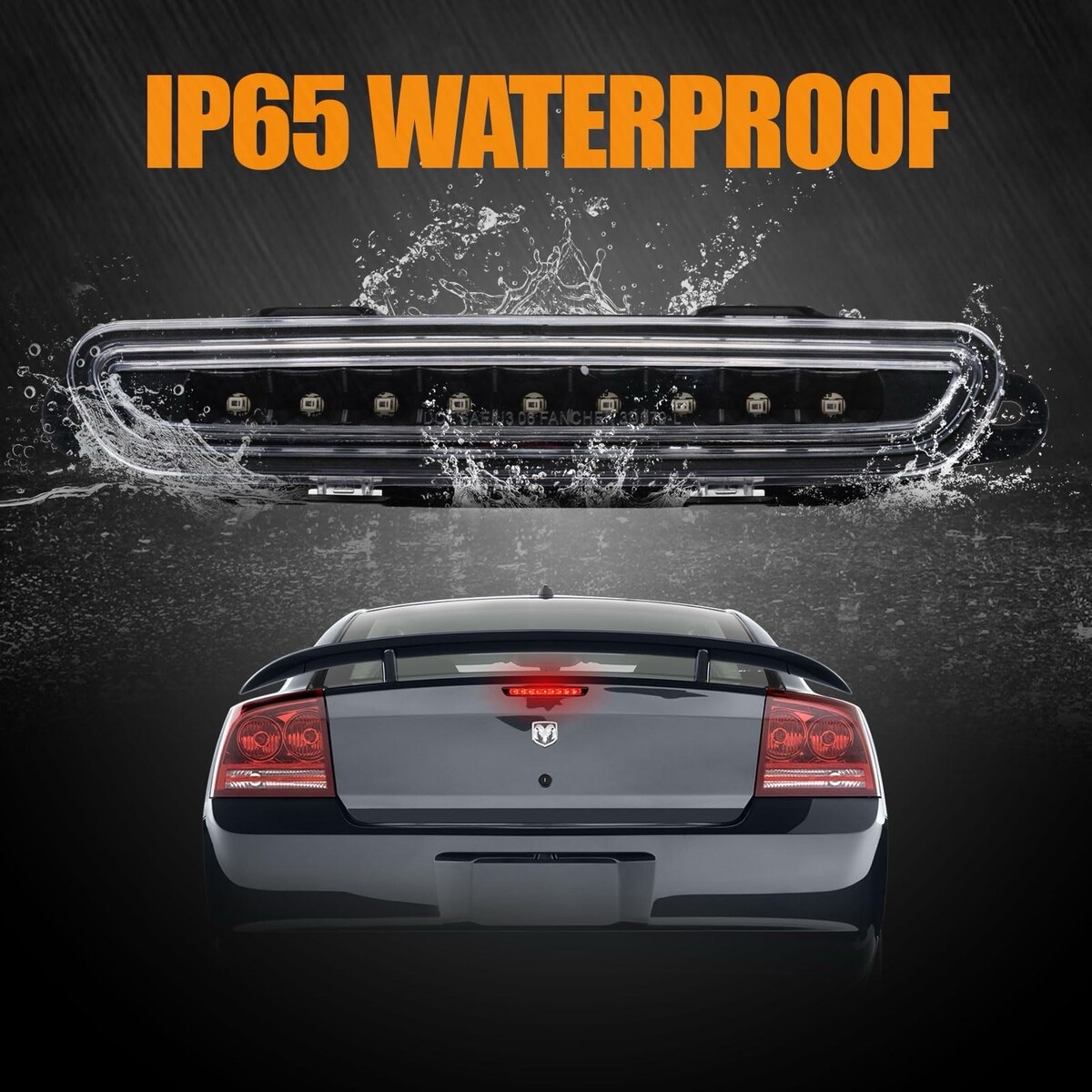 Aftermarket LED third brake light assembly compatible with 2006?2010 Dodge Charger. This is a direct-fit replacement for the factory center high mount stop lamp (CHMSL) and plugs into the original wiring harness with no modification required.