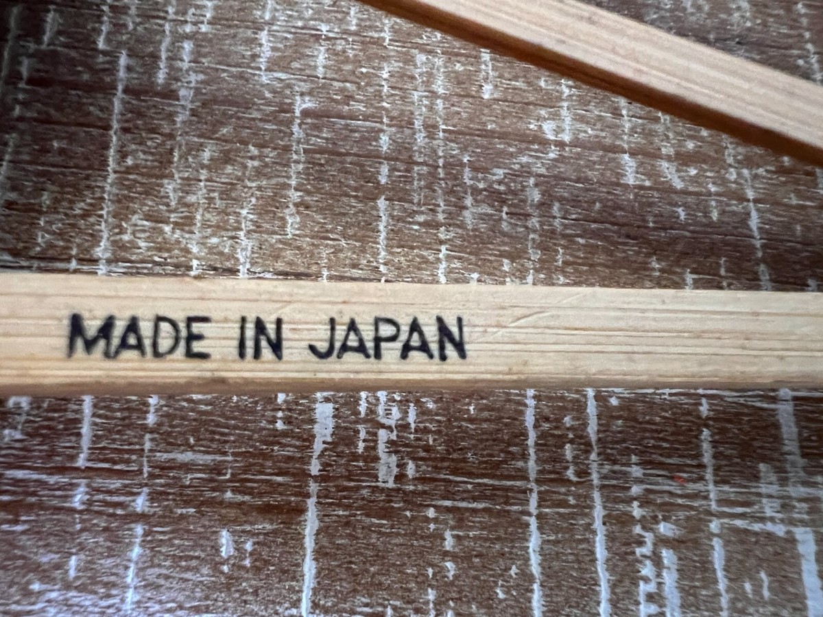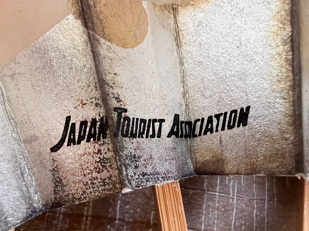 Heavy paper vintage fans with bamboo tines; the paper part is red with silver and gold metallic paint, a large seal of the Japan-US Centennial 1860-1960 on front and back. stamped Japan Tourist Association on one side. Excellent condition as these have been stored since they were purchased. Only flaw is one side of one fan, the paper has drawn away from the wooden stick. They measure 10 " x 19".