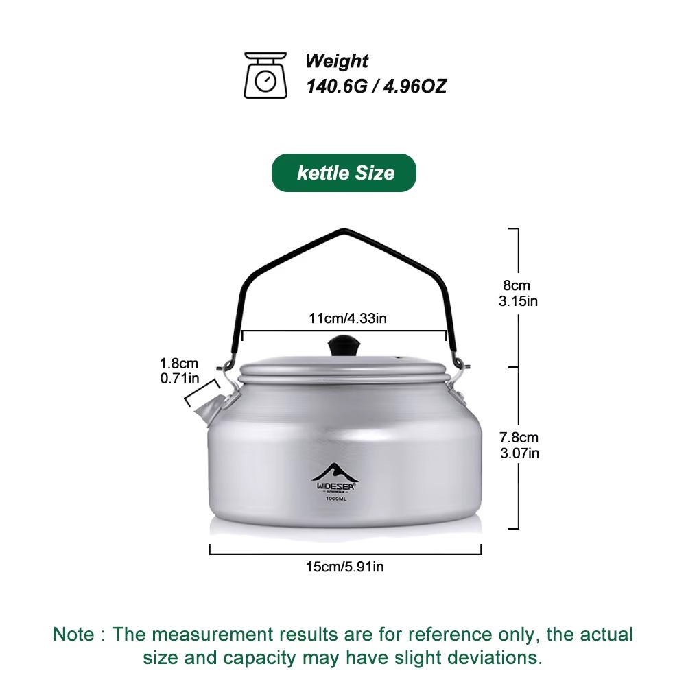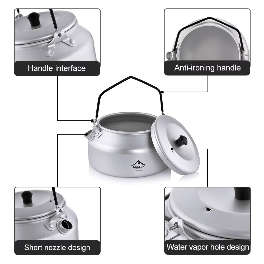 Widesea 1L Ultralight Camping Kettle | Pure Aluminum Portable Outdoor Teapot