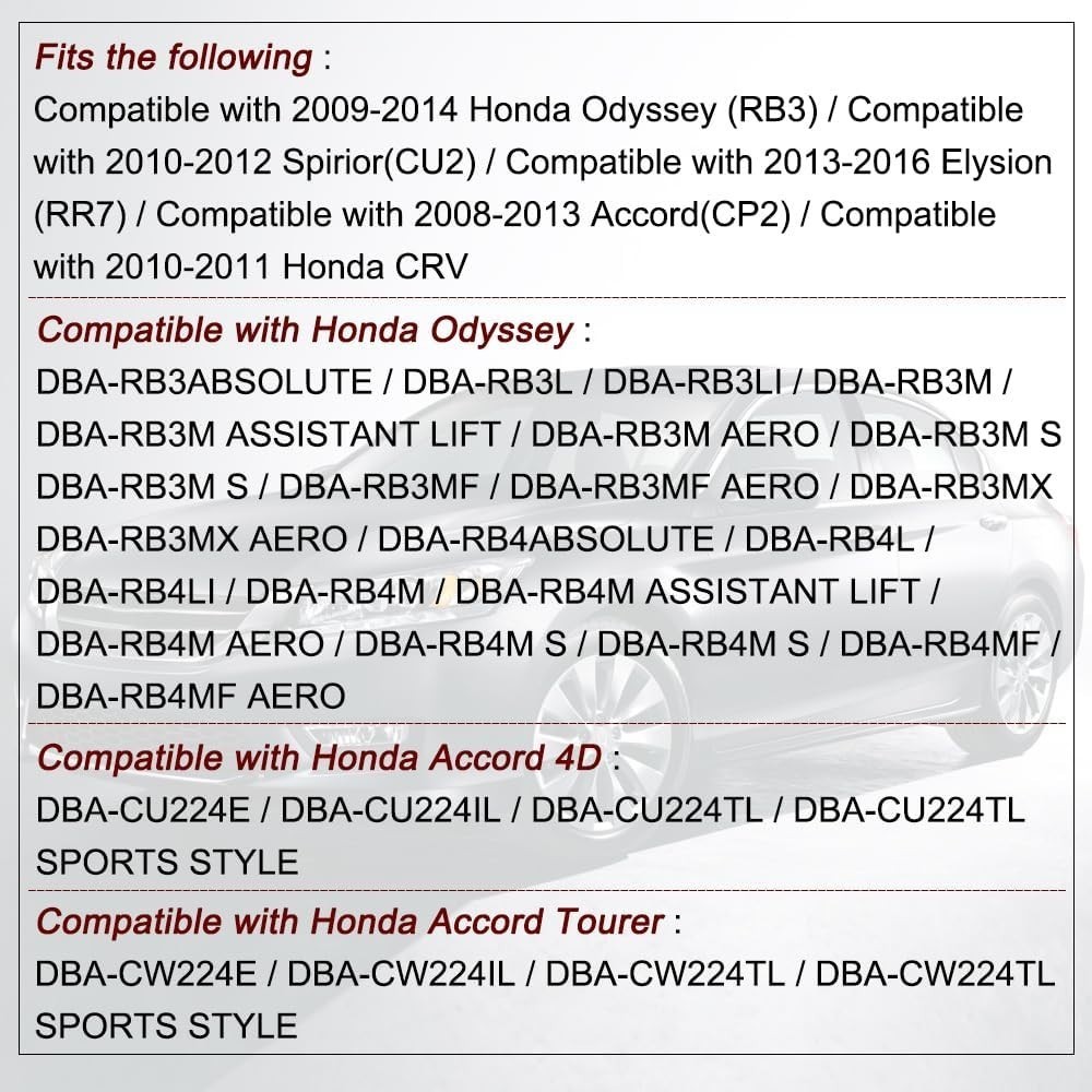 Compatible with Honda Accord(CP2) 2008-2013, Compatible with Honda CRV 2010-2011, Compatible with Honda Odyssey (RB3) 2009-2014.