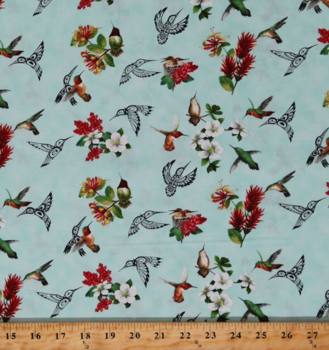 Cotton Hummingbirds Birds Animals Flowers Floral Fabric Print by Yard D477.60