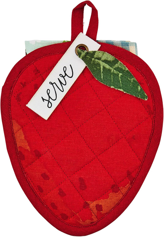 Botanica Fruit 7" X 7"In Pot Holder and 12" X 12"In Towel Set, Strawberry
