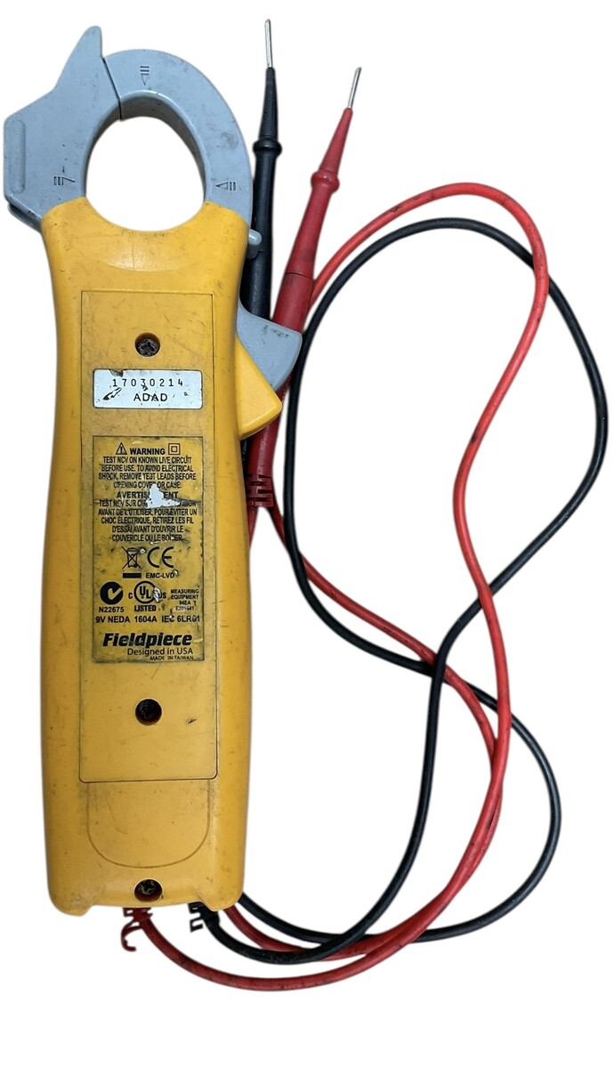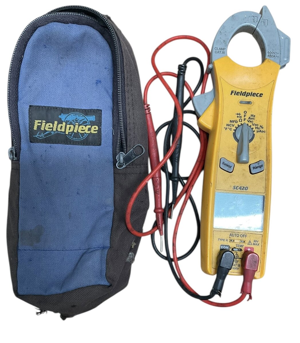 Category: AC Service toolsType: ClampBrand: FieldpieceModel number: SC420Size: HandheldColor: Yellow/GreyPower source: BatteryBattery Included: yesCase included: yesVoltage: 600VCondition:Used