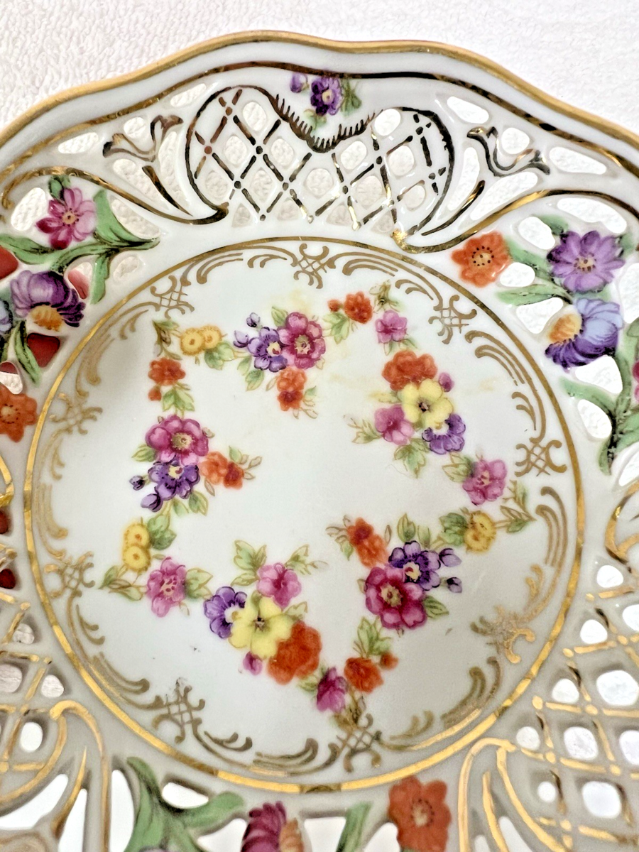 Chateau Dresden Royal Dresner Art Nut Dish 4" Pierced Round Floral Garland Center