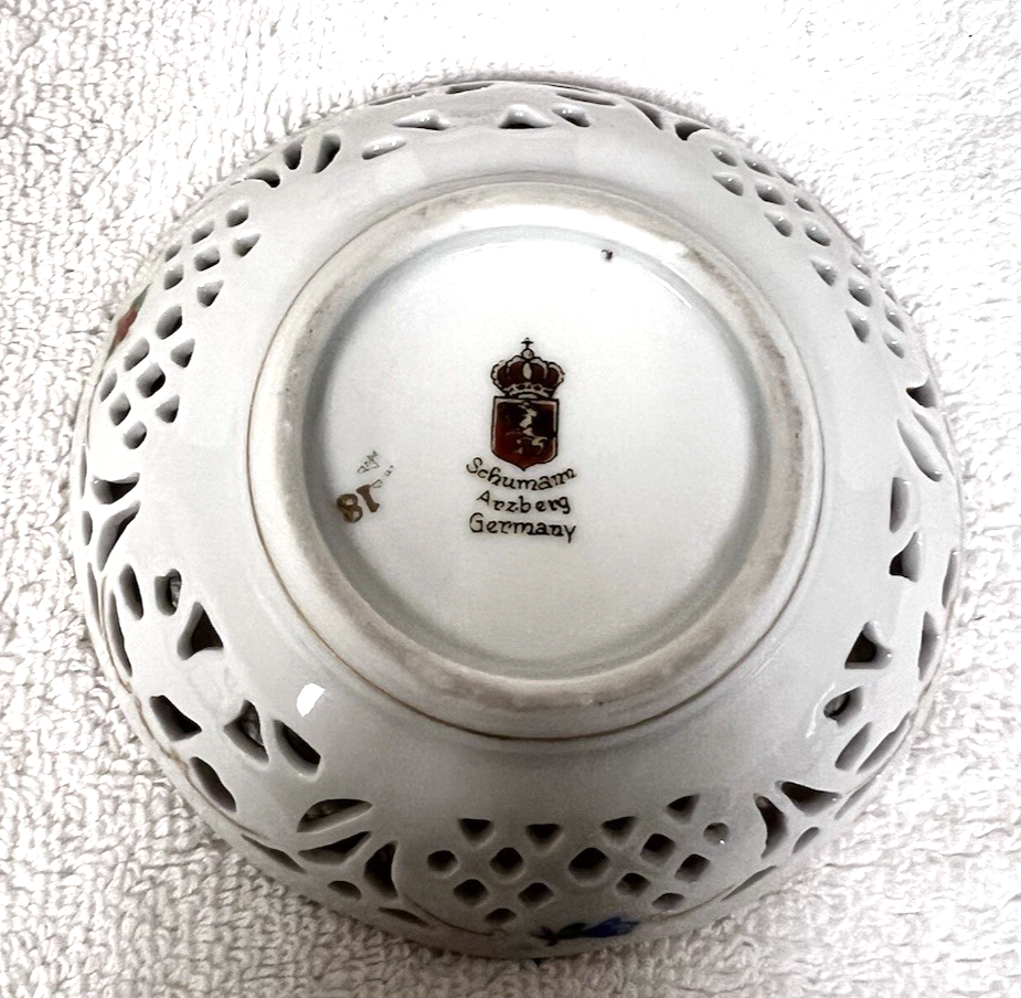 Chateau Dresden Royal Dresner Art Nut Dish 4" Pierced Round Floral Garland Cente