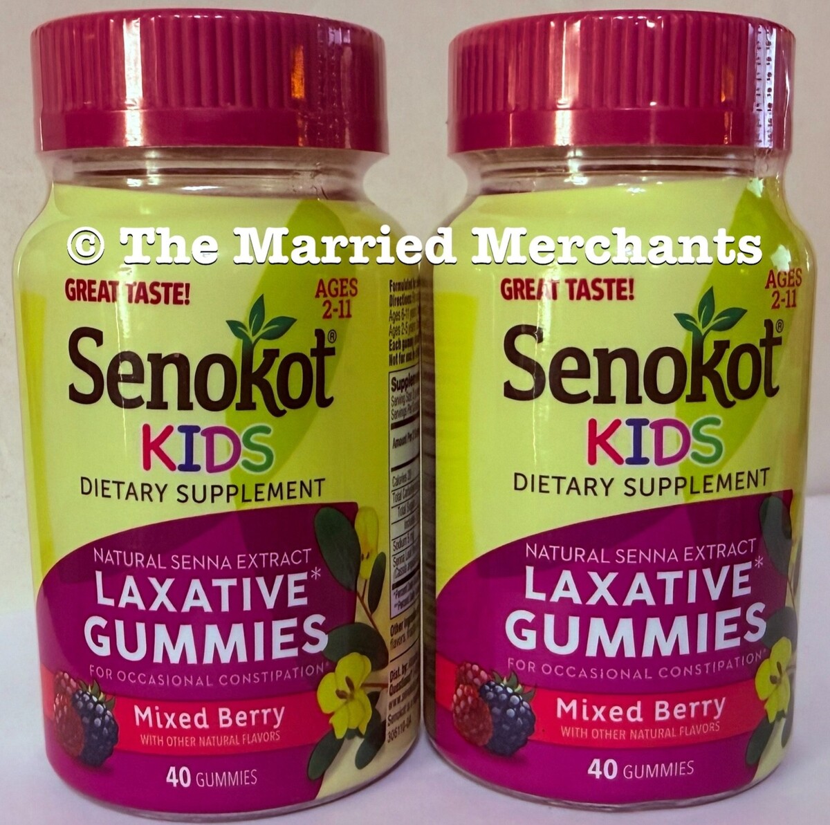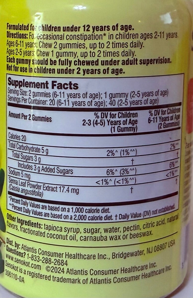 Senokot KIDS Natural Senna Extract Laxative Gummies Dietary Supplement - (2) bottles of 40 gummies each.