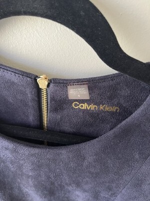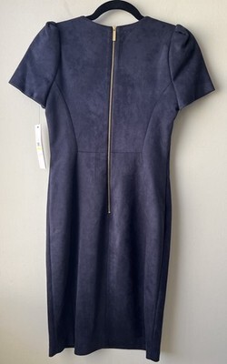 NWT CALVIN KLEIN Navy Blue Fitted Scuba Suede Sleeveless Sheath Dress SZ 4 $129. Condition is New with tags. Shipped with USPS Ground Advantage.