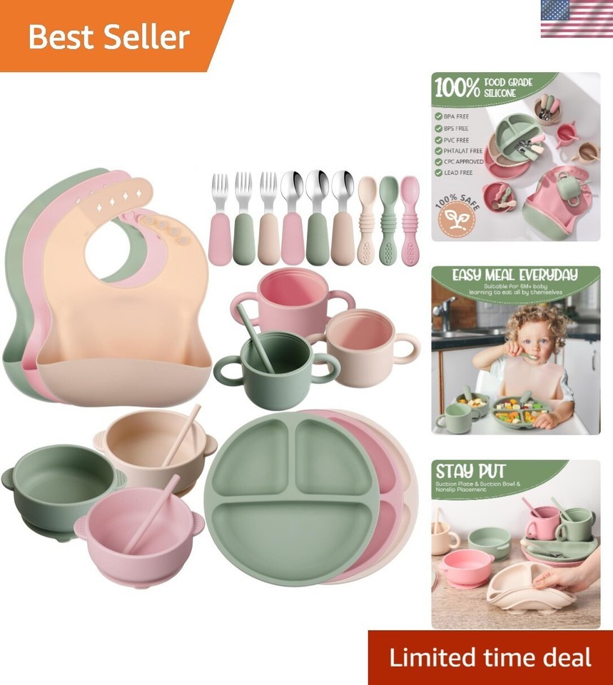 24 Pack Silicone Baby Feeding Set Baby Led Weaning Supplies Includes Suction ...