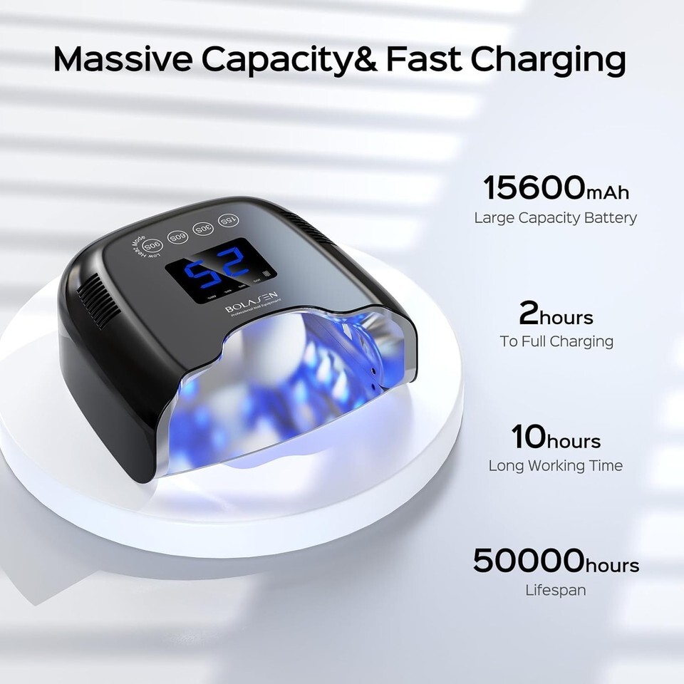 Features: Smart Sensor,Rechargeable,Portable,Wireless,Adjustable Timer,Detachable Base,Large Space,Fast Curing,Metallic Reflector