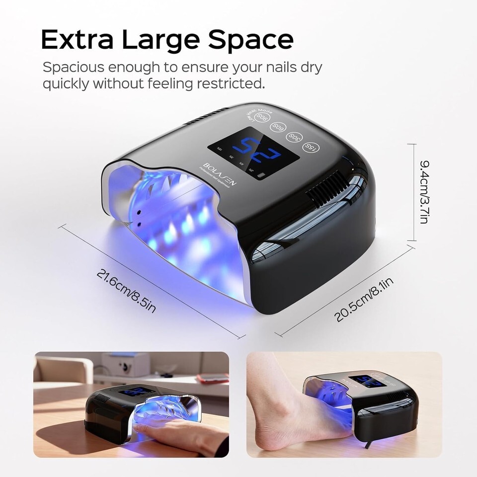 Transform your nail care routine with our 54W Portable UV Nail Lamp. Enjoy the luxury of salon-quality nails in the comfort of your own home, whether hosting a DIY pampering session with friends or indulging in a personal spa experience. If you're not completely satisfied, out for a hassle-free return. Elevate your nail game today and experience a superior finish with each use!