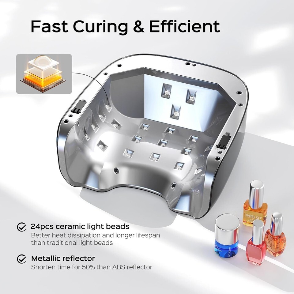 Featuring 24 evenly-distributed LED beads for complete coverage, ensuring the perfect cure for gel polish, base/top coats, and builder gels.