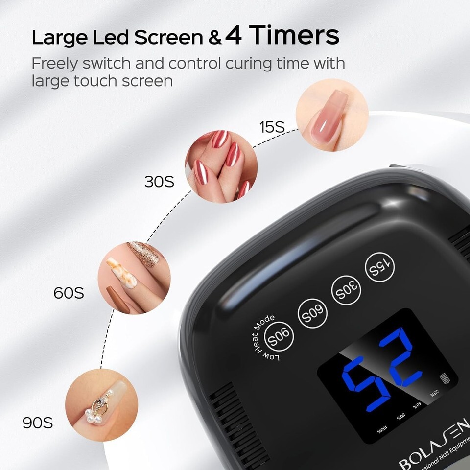 Choose from 4 adjustable timer settings (15s, 30s, 60s, 99s) to suit your gel curing needs.