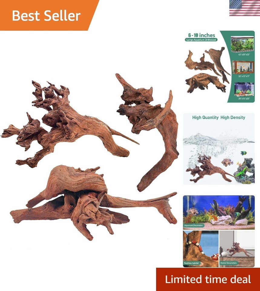 Natural for Aquarium Decor, 3-Piece 6''-10'' Large for Decorations on Fish Tank, Reptiles Bearded Dragon Accessories or Air Plants Habitat