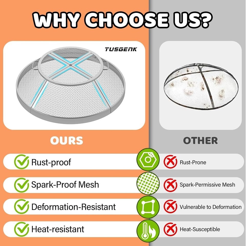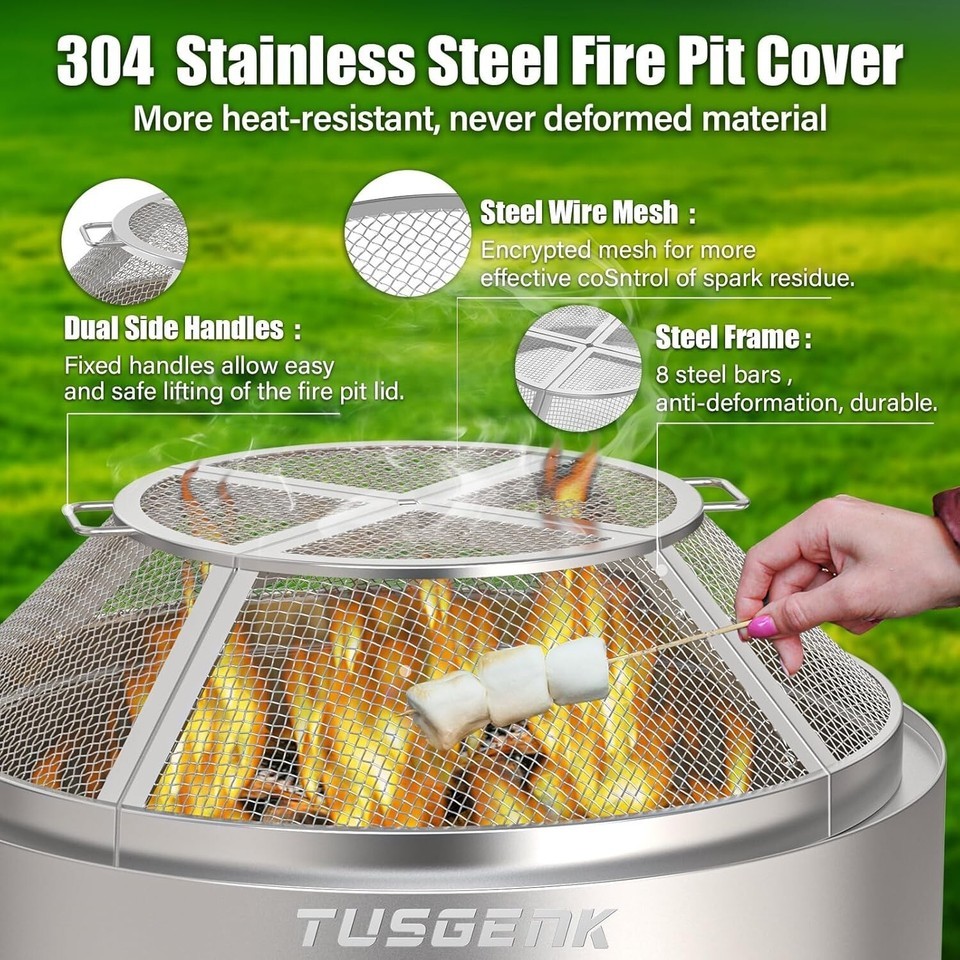 HEAVY DUTY -- Crafted from 304 stainless steel, this fire pit mesh cover is built to last, providing long-lasting durability and protection. Its rugged construction withstands high temperatures and the elements, making it perfect for continuous outdoor use. You can enjoy countless bonfires without worrying about wear and tear