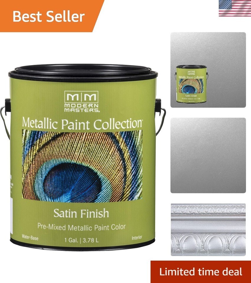 1 gal ME591 Platinum Metallic Paint Collection, Satin Water-Based Decorative ...