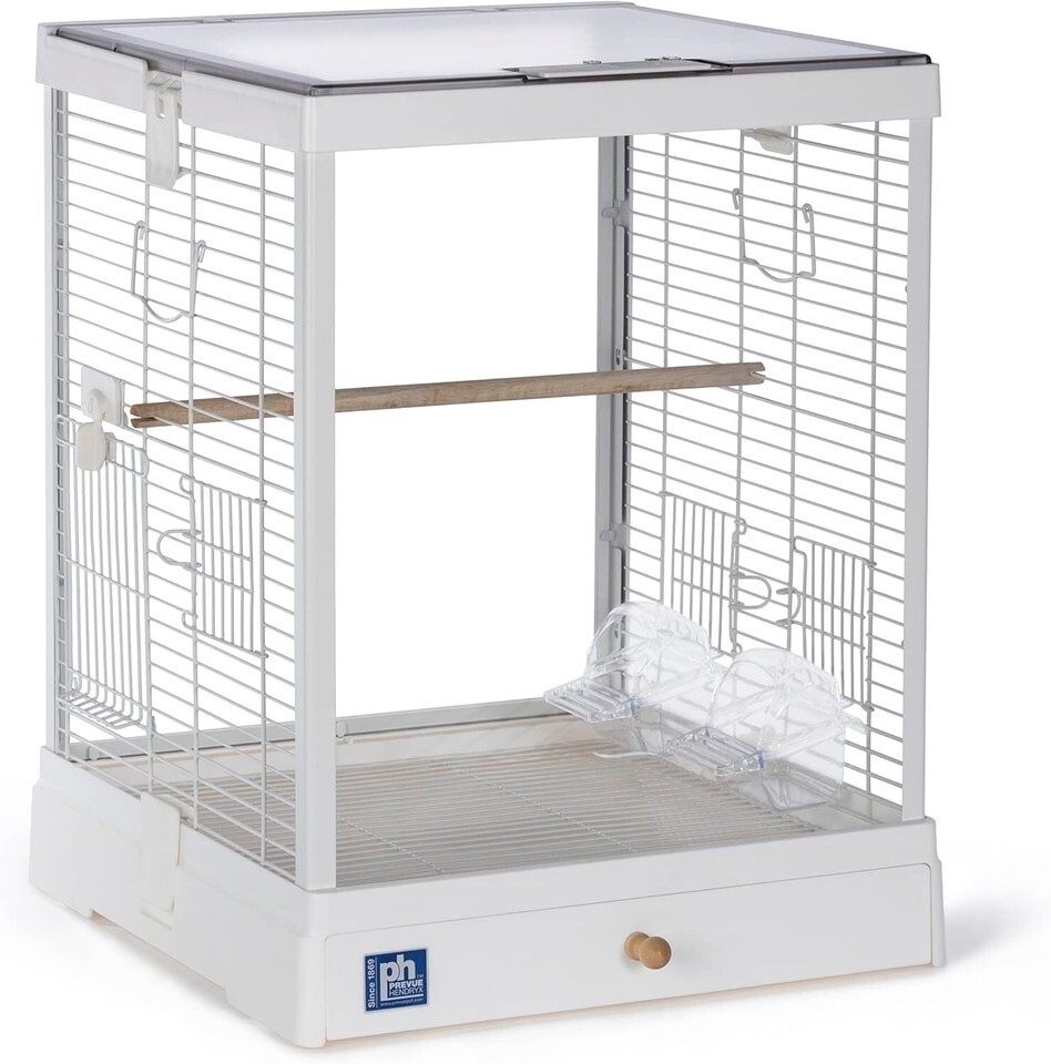 A modern, elegant glass-sided cage for an unobstructed view of your birds! Opposing-glass sides for a clear-through view
